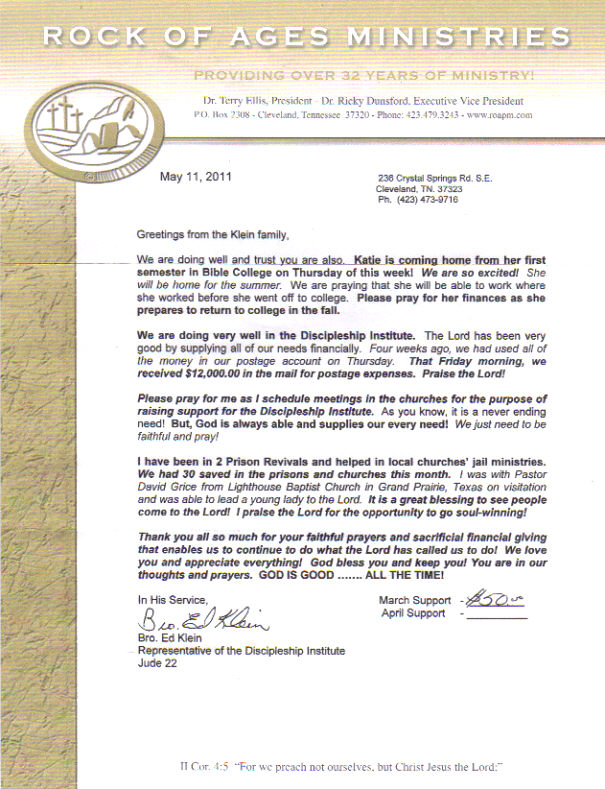 Index of /users/thevictorybaptistchurch_com/files/Missionary prayer letters/Ed and Rita Klein